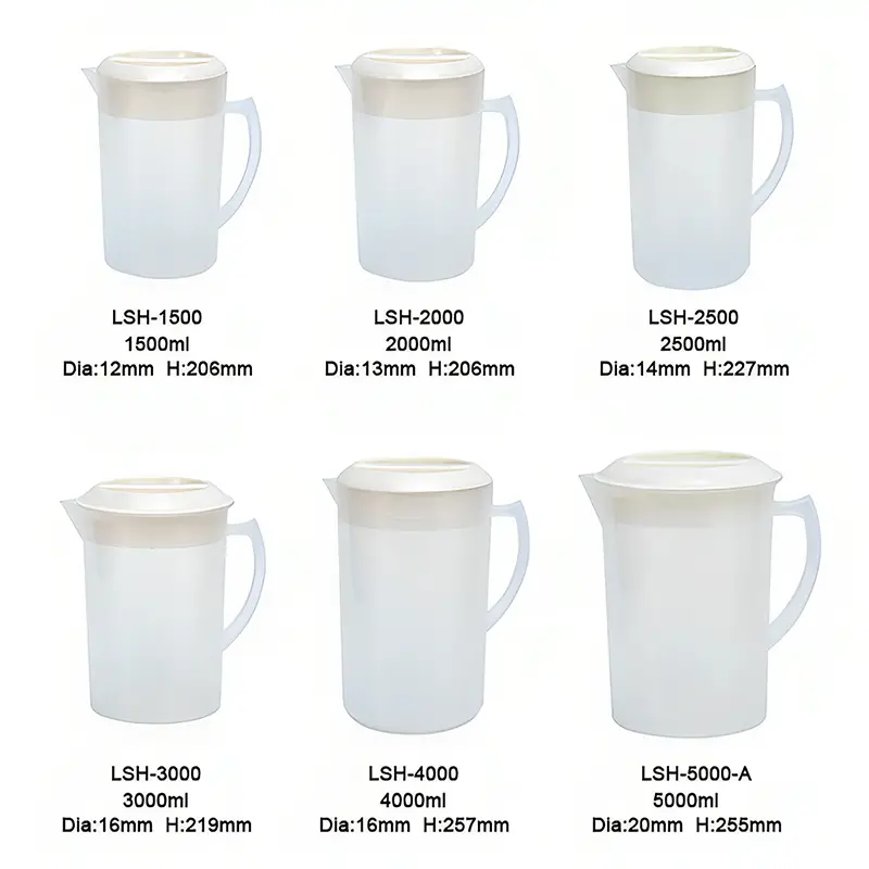 Ningbo Powerr Plastic Products Co., Ltd est l’un des meilleurs fabricants de pichet d’eau froide en plastique PP de 1 500 à 5 000 ml en Chine. Cette conception a six spécifications différentes, veuillez consulter la feuille ci-dessous. De plus, nous avons équipé le pichet d'un couvercle à double trou. De l'utilisation familiale quotidienne aux environnements professionnels, il offre une conception unique qui répond à divers besoins, rendant chaque utilisation pratique et efficace. Si vous êtes intéressé par cette série ou si vous avez besoin d'autres matériaux et tailles, n'hésitez pas à nous contacter !