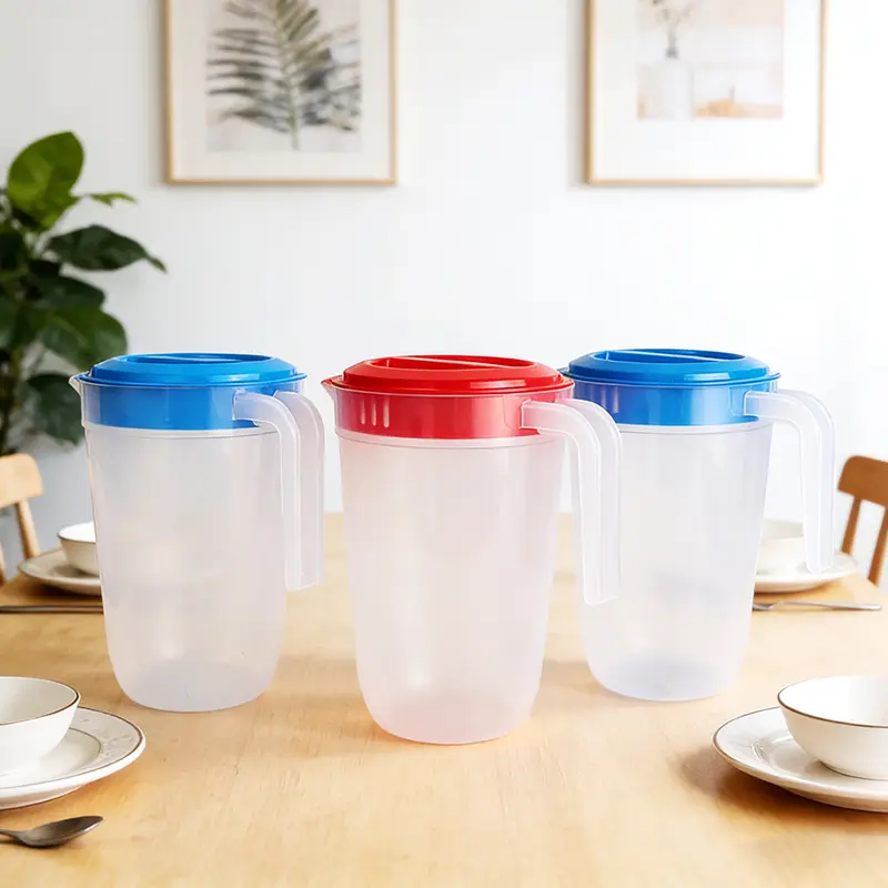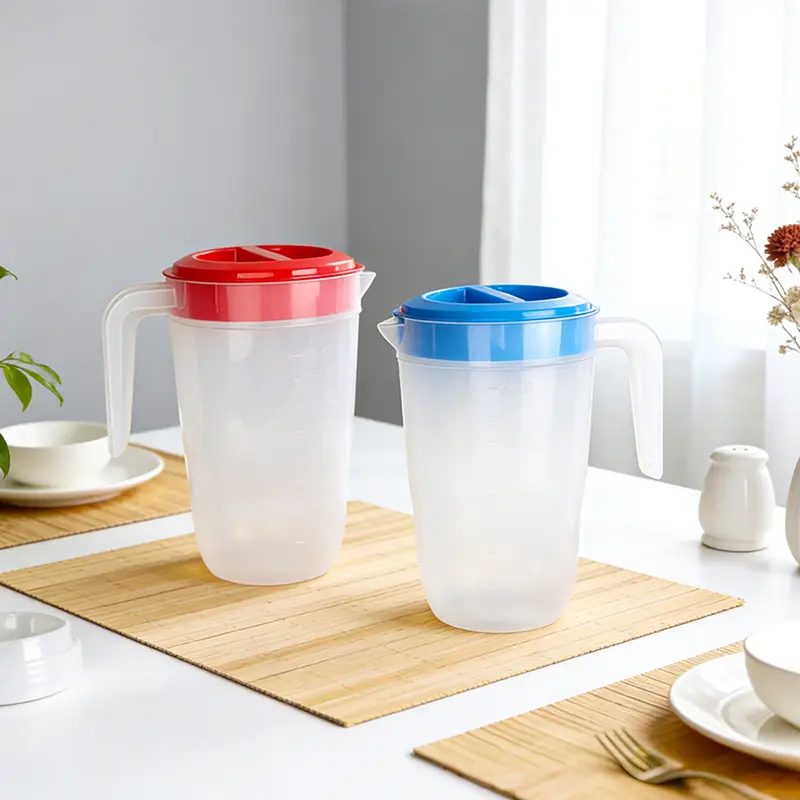 Ce pichet en plastique commercial avancé de 2 L PP à bas prix pour les magasins de boissons est spécialement conçu par Ningbo Powerr pour les magasins de boissons. Ce pichet en plastique semi-transparent blanc lait est fabriqué à partir de PP de qualité alimentaire, doté d'une finition mate douce qui vous permet de vérifier clairement le niveau d'eau tout en évitant l'aspect froid des versions entièrement transparentes. Ses couvercles arrondis rouges ou bleus ajoutent une touche lumineuse, s'adaptant parfaitement aux styles de maison nordiques, rustiques et autres. Conçue pour être pratique, la large poignée incurvée permet une tenue sans effort d'une seule main. La rainure dirigeant le flux du couvercle garantit un versement fluide et sans déversement, réduisant ainsi le travail de nettoyage de la table. Avec des lignes épurées et un fond rétréci, il s'intègre parfaitement dans les étagères des portes du réfrigérateur sans occuper d'espace supplémentaire. La capacité de 2 litres constitue un équilibre, répondant aux besoins commerciaux tout en restant facile à manipuler pour le personnel.