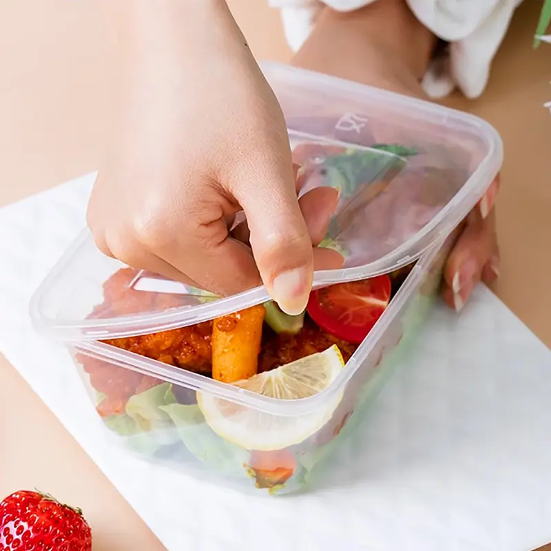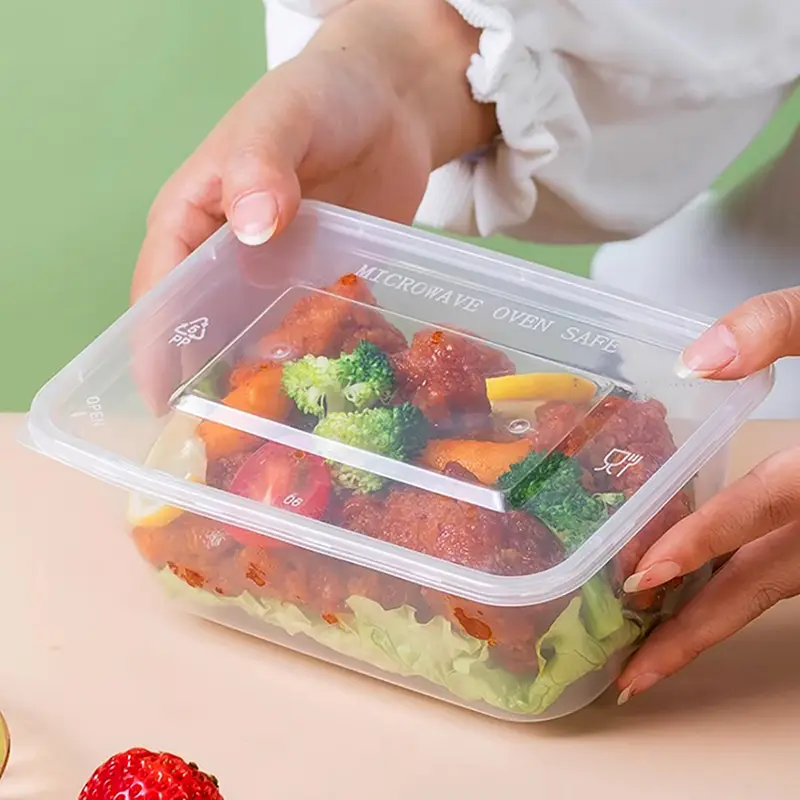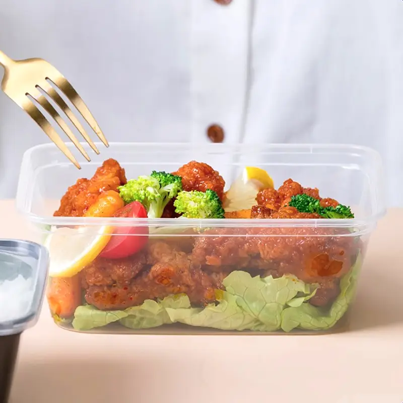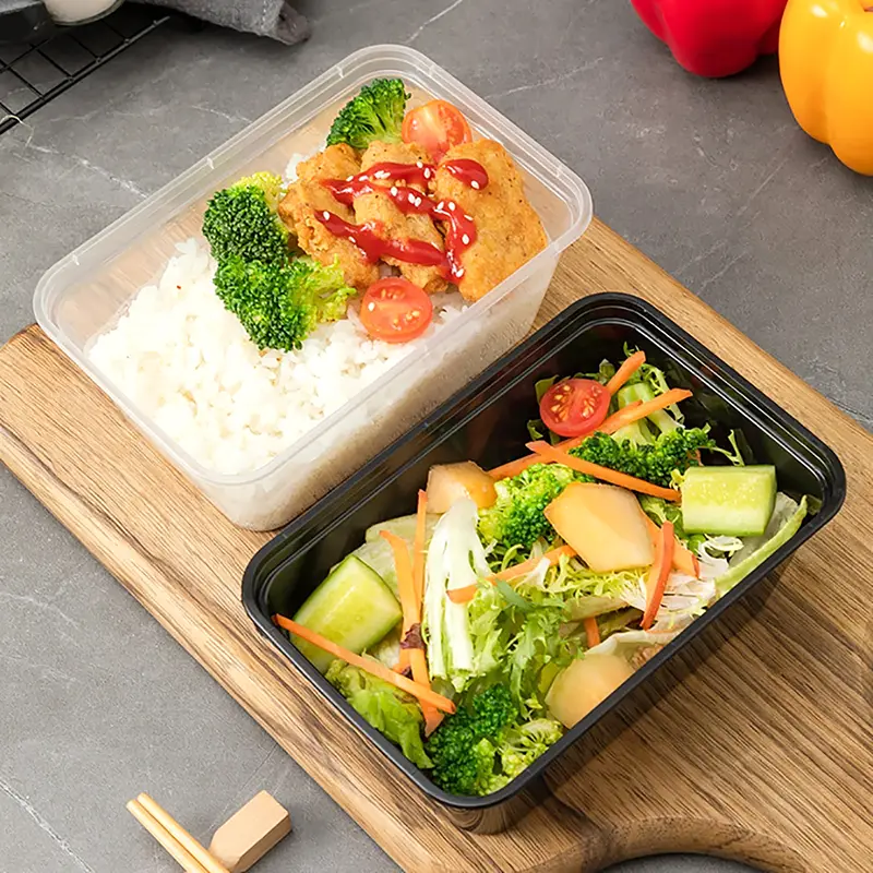 Ningbo Powerr fournit un récipient alimentaire rectangulaire transparent de 750 ml à bas prix en Chine. Fabriqué dans un matériau sûr, il contient des repas chauds, peut être réfrigéré ou passé au micro-ondes brièvement, sans odeur ni déformation. Sa capacité dorée de 750 ml s’adapte parfaitement au repas complet d’une seule personne, pouvant accueillir des plats principaux et des accompagnements sans gaspillage. La base et le couvercle hermétiquement fermés empêchent les fuites de soupe, adaptés aux aliments en sauce. Sa conception plus large en haut et plus étroite en bas garantit un empilage stable, pratique pour la préparation en vrac des commerçants et le stockage des utilisateurs tout en maximisant l'espace. Les versions transparentes mettent clairement en valeur les aliments, les versions noires cachent les résidus ; des couleurs personnalisées, des impressions et de nouveaux outils sont également disponibles.