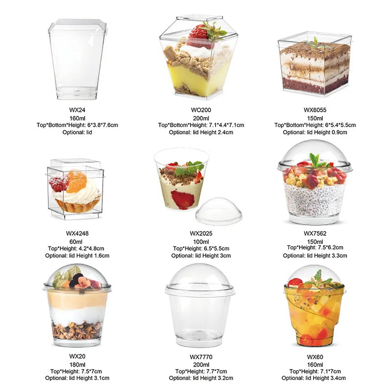Les styles sont variés et la compatibilité est forte, adaptée à divers desserts et occasions. Les articles avec couvercles conviennent au transport et au transport des aliments. Le style de petite capacité peut être utilisé comme tasse de dégustation. Le style de grande capacité peut répondre aux besoins des rassemblements.